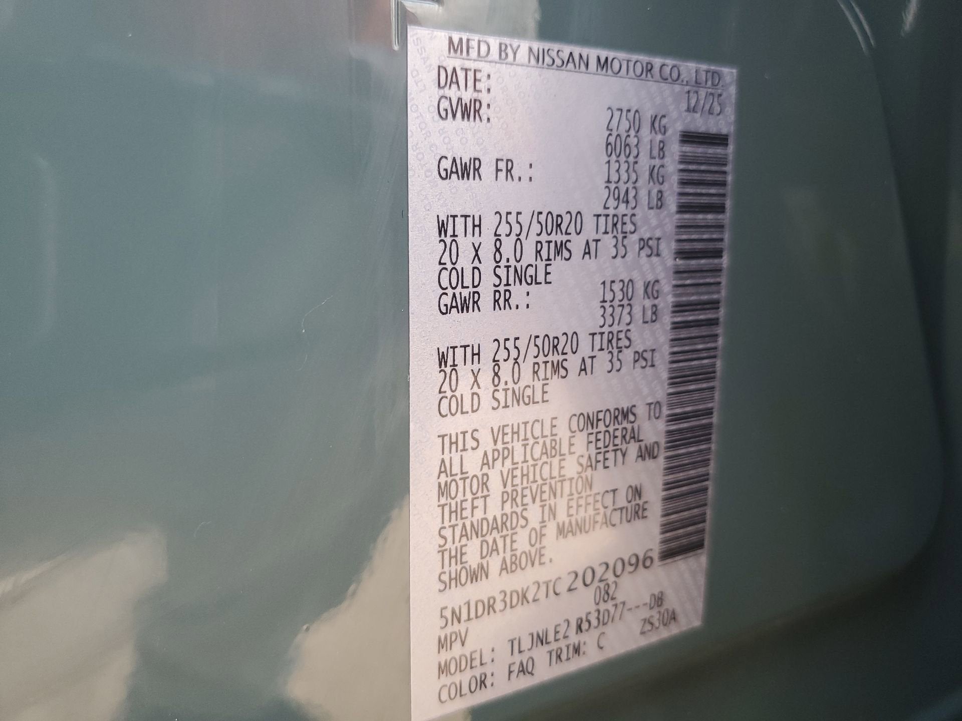 - Tires: P255/50R20 All-Season